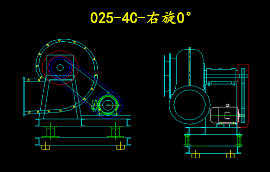 上圖為025-4C-右旋0°的玻璃鋼離心風(fēng)機圖紙;