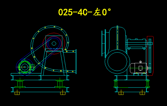 和前文介紹的右180°的4C風(fēng)機不同的是,右0°為風(fēng)機的出口位于水平方向的下面,葉輪順時針旋轉(zhuǎn)出風(fēng)。
