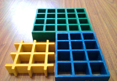 模塑工藝制作的玻璃鋼產品以鏤空的格柵板材產品為主。使用玻璃纖維紗與樹脂在格柵模具上制作,通過加壓加熱的方式成型。