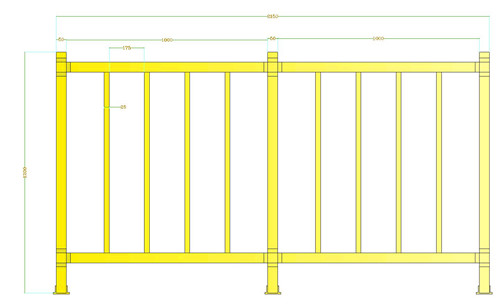 b、根據護欄的規格型號,將對于的型材類產品進行切割、打磨等工作。以1m寬,1m高的護欄為例,首先將橫撐件和豎撐配件先切割成1m的尺寸,在將扶手按照同樣的方法切割;