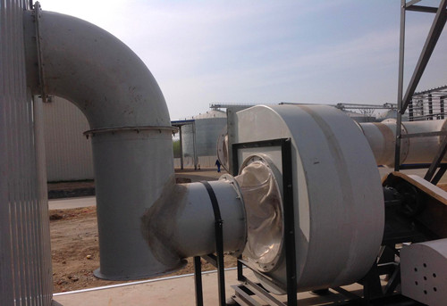 從圖中可以看出有一些風(fēng)機(jī)的出風(fēng)口是與煙囪直接連接的,故而不需要使用軟連接。軟連接多用于風(fēng)機(jī)的進(jìn)風(fēng)口與管道之間。軟連接在風(fēng)機(jī)工作時(shí)可起到緩沖的作用,減小風(fēng)機(jī)與管道彼此之間的影響。同時(shí)也方便風(fēng)機(jī)的安裝拆卸以及日常的維護(hù)工作。