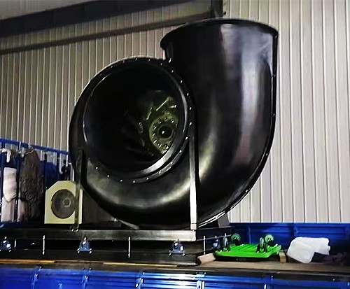 當(dāng)玻璃鋼離心風(fēng)機的型號超過10C時,因為風(fēng)機的葉輪、外殼等配件的尺寸都偏大,所以需要將玻璃鋼材質(zhì)的架子更換為碳鋼架子。最近有個江蘇的客戶從我司采購了一臺14C的風(fēng)機,下面是該風(fēng)機的安裝與發(fā)貨圖。