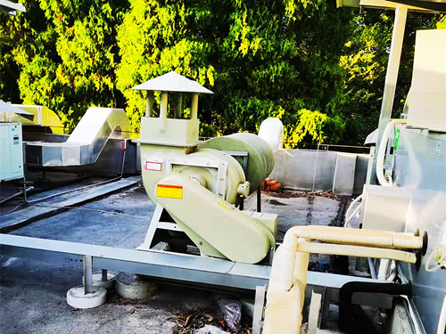 今天到客戶的公司考察,順便查看了之前在我司采購的一批小型玻璃鋼離心風(fēng)機(jī)的使用情況。下圖是一張5C的小型玻璃鋼離心風(fēng)機(jī)使用圖,目前風(fēng)機(jī)的使用狀況良好。相對(duì)來說,型號(hào)偏小的風(fēng)機(jī)葉輪轉(zhuǎn)速比較高,所以在條件運(yùn)行的情況下可使用螺栓將風(fēng)機(jī)進(jìn)行固定。