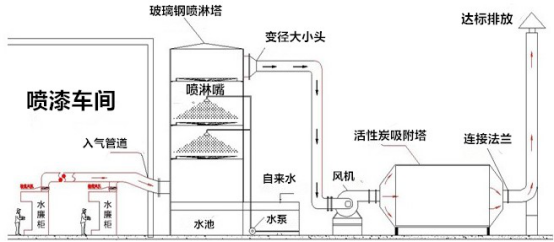 噴漆廢氣處理設(shè)備的處理方式流程如下(參照下圖):